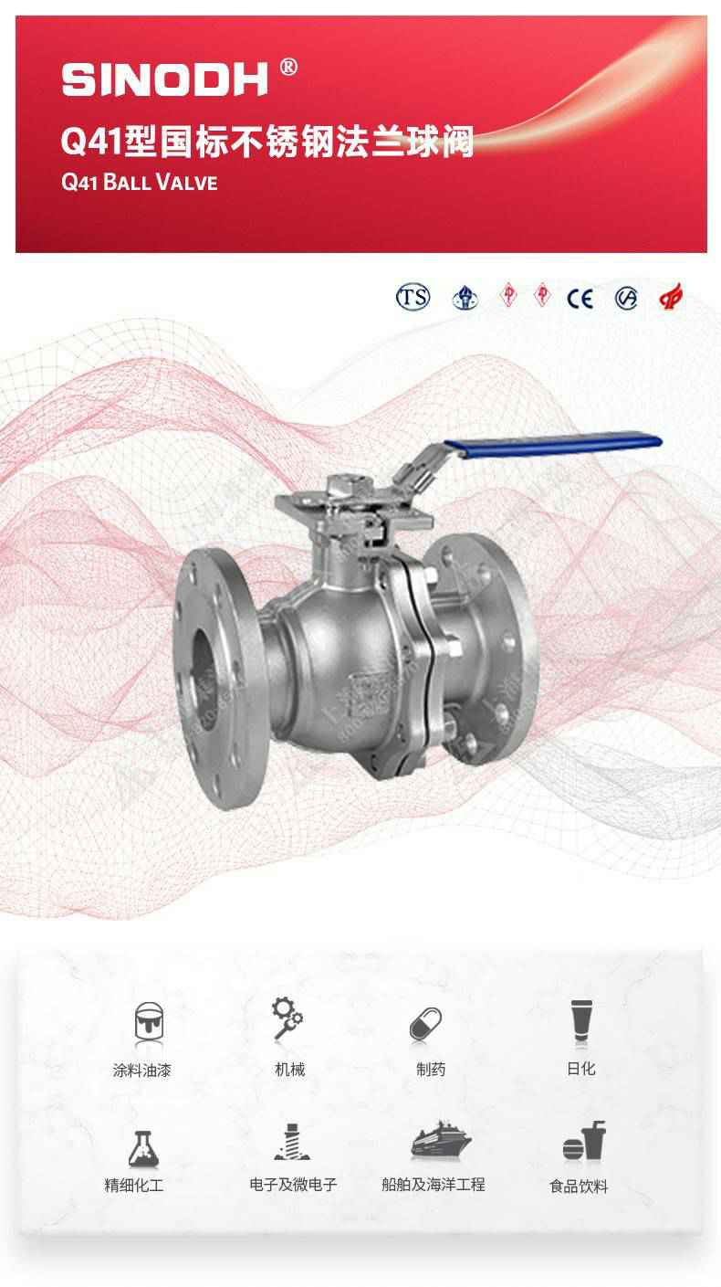 Q41型国标不锈钢法兰球阀,为太原俊熙线上技术支持有限公司自主研发生产。本产品设计制造标准符合GB/T12237、GB/T 1 2224标准该产品的球体在介质压力作用下,球体能产生-定的位移并紧压在出口端的密封面上,保证出口端密封。适用于水、溶剂、酸和天然气等-般工业介质,也适用于工况恶劣的介质,如氧气、过氧化氢、甲烷和乙烯等介质。